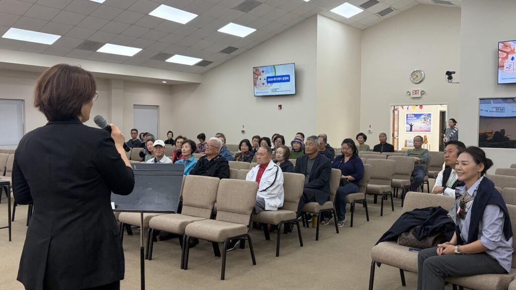 “오늘 세미나는 우리 교민 어르신들께서 메디케어를 보다 잘 이해하고, 본인에게 맞는 혜택을 누리실 수 있도록 준비했습니다. 설명은 오랫동안 시니어 보험을 상담해 오신 이재연 대표님이 쉽고 친절하게 안내해 주셨습니다. 무엇보다 오늘 이 자리를 위해 장소를 기꺼이 내어주신 남부한인장로교회와 송성섭 담임목사님, 그리고 정성껏 음식을 준비해 주신 교회 관계자분들께 진심으로 감사드립니다. 오늘 이 시간이 여러분께 유익하고 따뜻한 도움이 되시길 바랍니다.”