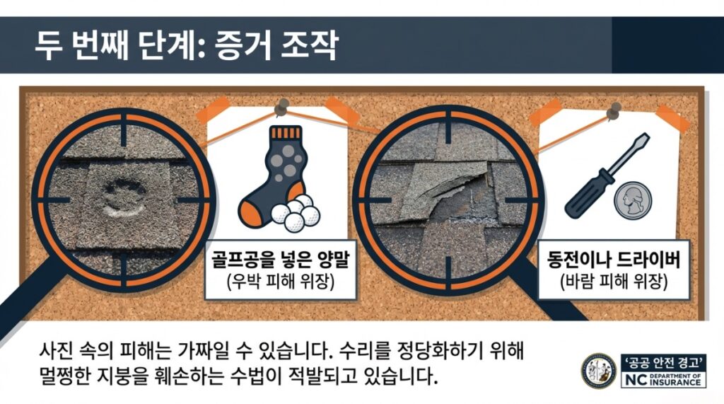 이들 계약자는 명함을 건네며 무료 점검을 제안하고, 지붕에 큰 문제가 있는 것처럼 겁을 줍니다. 심지어 일부는 고의로 지붕을 훼손해 사진을 찍은 뒤 피해 증거라며 보여주기도 합니다. 드라이버나 지렛대로 기와를 들추거나, 골프공을 양말에 넣어 우박 피해처럼 두드리는 방식도 실제로 적발된 사례입니다. 이후 당장 수리하지 않으면 큰일이 난다며 현장에서 계약을 요구하는 것이 전형적인 패턴입니다.